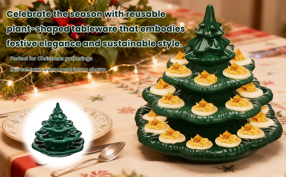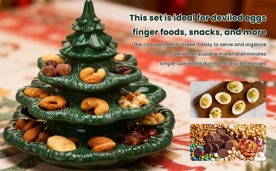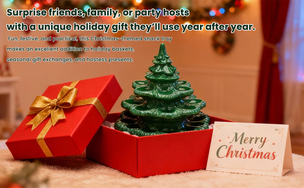 Elevate your holiday table with this beautifully crafted Christmas tree-shaped platter. The elegant ceramic construction and intricate detailing create a stunning centerpiece that adds warmth and charm to any gathering.